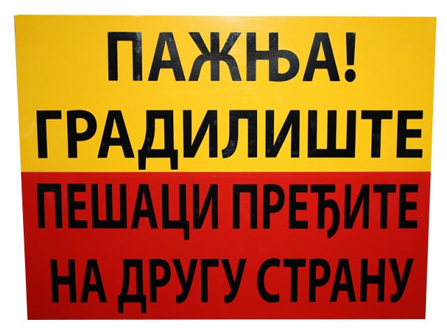 страни од главног улаза у градилиште и осветљава се посебним рефлектором, а уклања